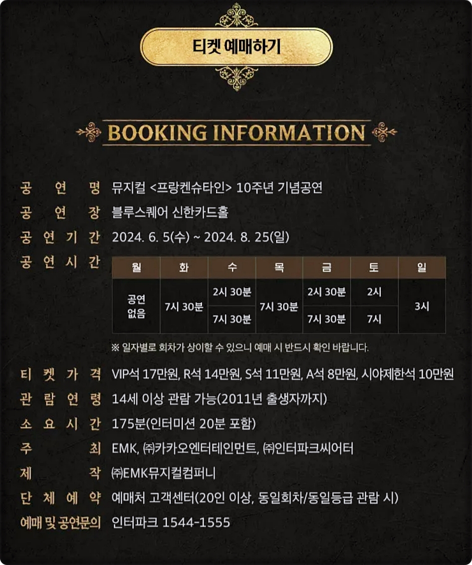 뮤지컬 프랑켄슈타인 기본정보 티켓팅 예매 캐스팅 정보