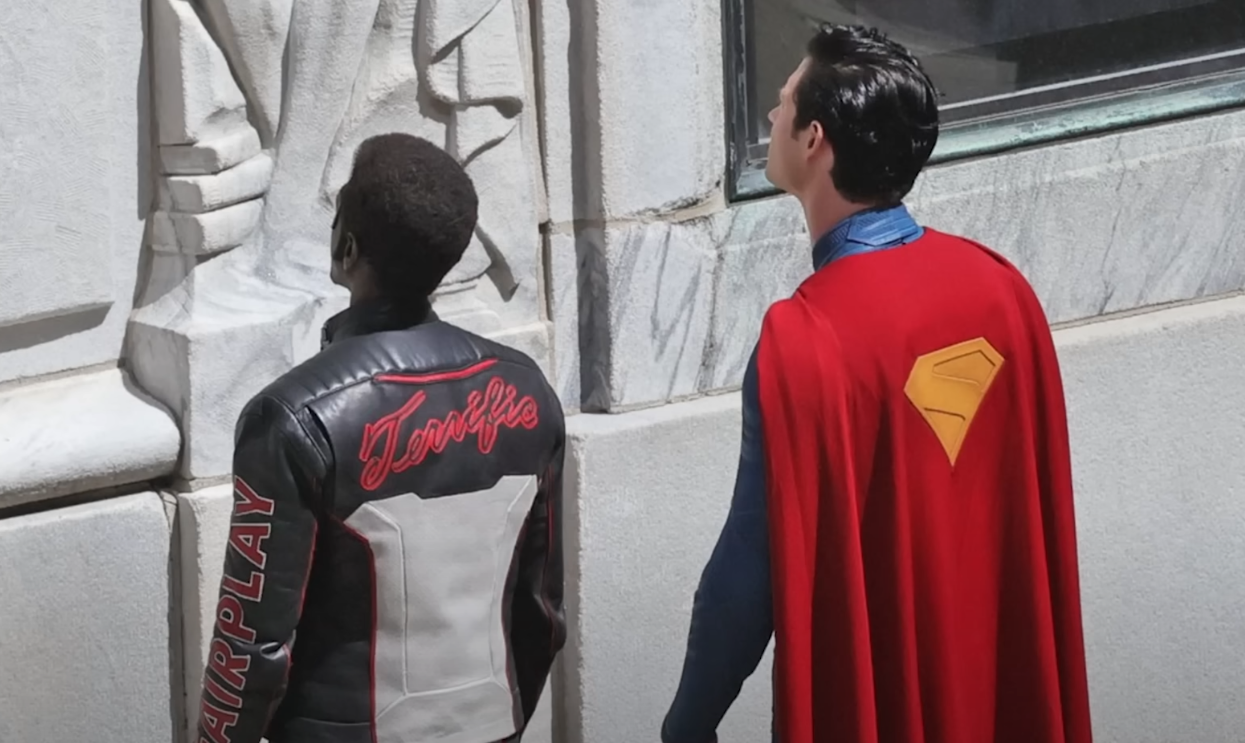 - 두 번째: 복구된 건물 앞에서 슈퍼맨이 건물 균형을 지적하는 유쾌한 장면.