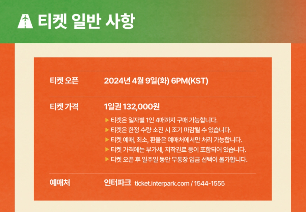 ✔️ 티켓 가격 : 토요일, 일요일 1일권 132,000원